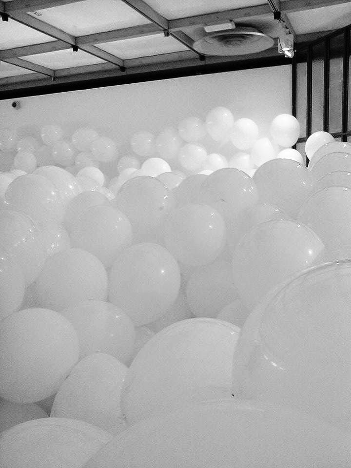 The concept was simple, a room was crawling with roughly 7,000 white balloons and us acting like since the year dot; when we were about 5 years old.